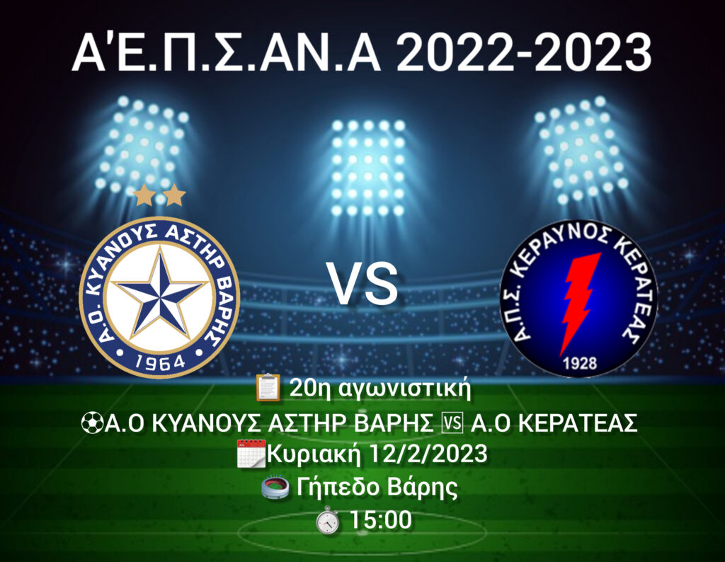 Την Κυριακή 12/2 ο ΑΣΤΕΡΑΣ μας θα αντιμετωπίσει τον Α.Ο Κερατέας εντός έδρας για την 20η αγωνιστική του πρωταθλήματος Α’Ε.Π.Σ.ΑΝ.Α.