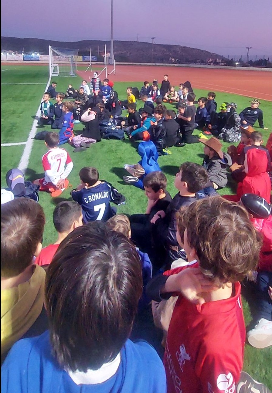 Οι διοργανωτές μοίρασαν σε όλους αποκριάτικo υλικό και με τον κλόουν να δίνει ξεχωριστό χρώμα στο πάρτυ οι μικροί αθλητές έπαιξαν πολλά διασκεδαστικά παιχνίδια.