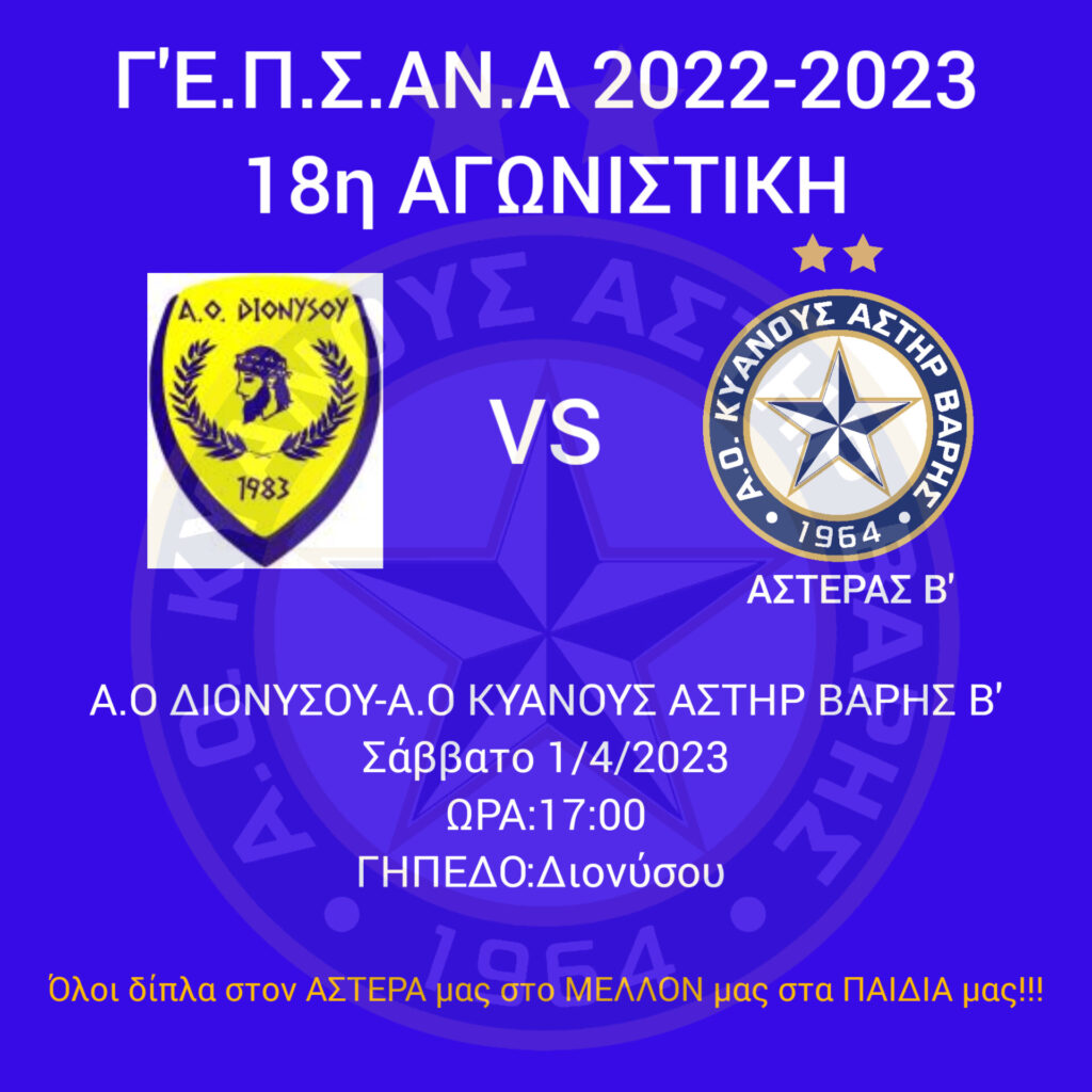 Το Σάββατο 1/4 αντιμετωπίζουμε εκτός έδρας τον Α.O ΚΟΥΒΑΡΑ για την 18η Αγωνιστική του Πρωταθλήματος Γ’Ε.Π.Σ.ΑΝ.Α.