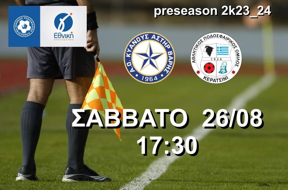 Το ΣΑΒΒΑΤΟ 26/08/2023 με ώρα έναρξης 17:30 πραγματοποιείται ο 4ος φιλικός αγώνας προετοιμασίας με αντίπαλο την ομάδα του ΑΠΟ ΚΕΡΑΤΣΙΝΙ