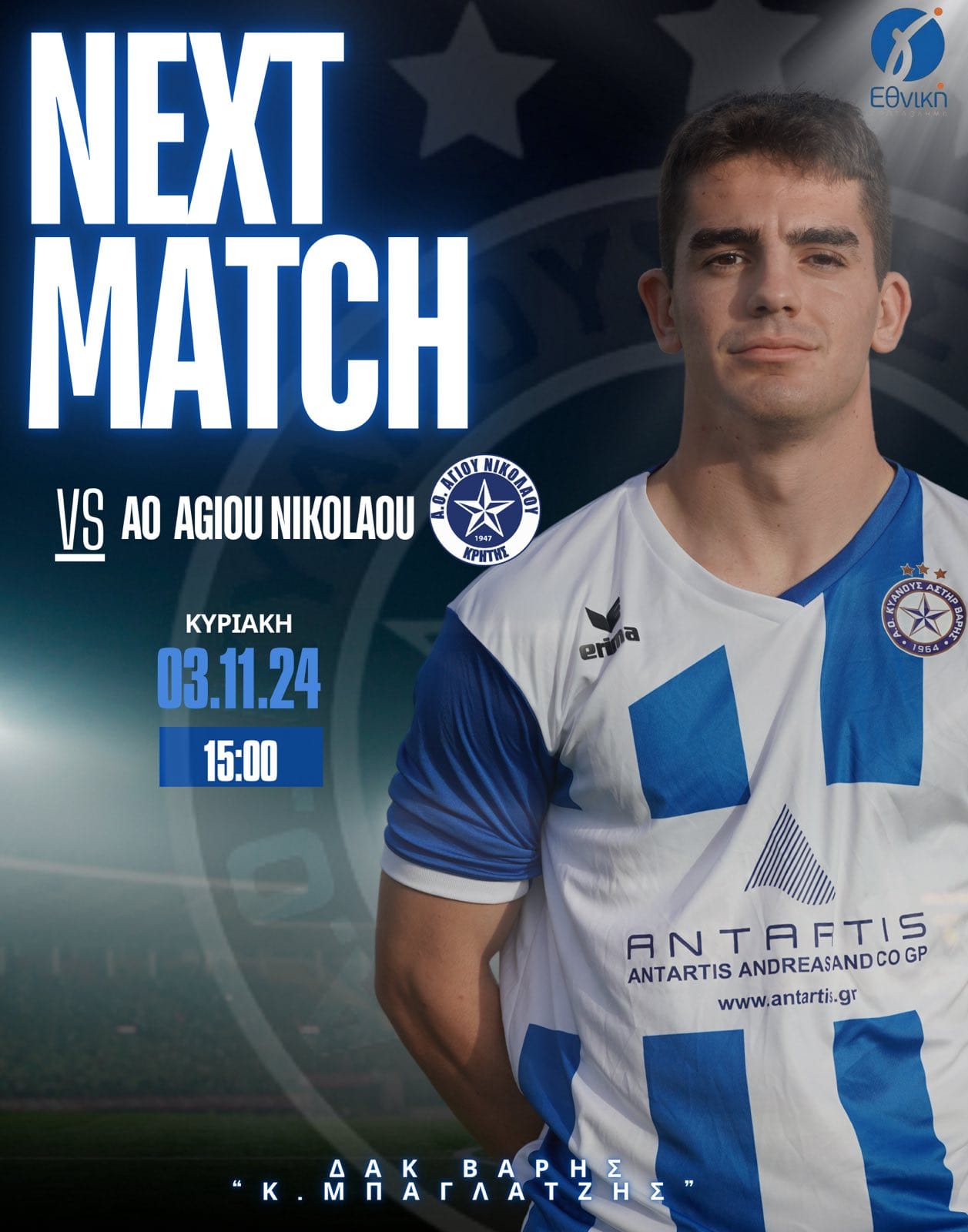 Το διοικητικό συμβούλιο του συλλόγου, το τεχνικό επιτελείο και οι ποδοσφαιριστές απευθύνουν κάλεσμα στους φιλάθλους της Ανατολικής Αττικής να δώσουν δυναμικό παρών στον αγώνα της Γ’ Εθνικής για την 7η αγωνιστική του πρωταθλήματος: ΑΟ ΚΥΑΝΟΥΣ ΑΣΤΗΡ ΒΑΡΗΣ-ΑΟ ΑΓ. ΝΙΚΟΛΑΟΥ .