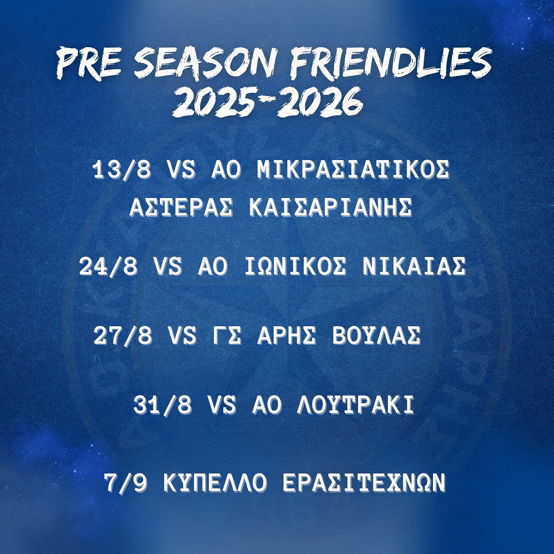 Η ομάδα μας μπαίνει σε αγωνιστικούς ρυθμούς ενόψει της νέας σεζόν, με μια σειρά από φιλικά παιχνίδια που θα αποτελέσουν σημαντικό τεστ για το σύνολο του προπονητικού επιτελείου και των παικτών.