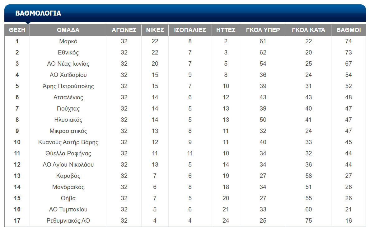 Τα αποτελέσματα της Γ’ ΕΘΝΙΚΗΣ (4ος Όμιλος) για τη σεζόν 2024 – 2025
