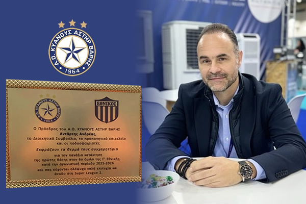 Ο Εθνικός εύχεται στην αξιόλογη ομάδα του Αστέρα Βάρης κάθε επιτυχία στις μελλοντικές της δραστηριότητες».