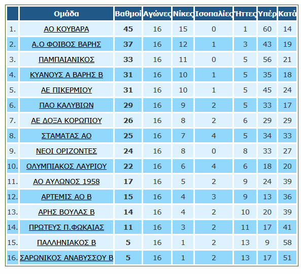 ΒΑΘΜΟΛΟΓΙΑ Γ ΕΠΣΑΝΑ 2025 – 2026  Α.Ο ΚΥΑΝΟΥΣ ΑΣΤΗΡ ΒΑΡΗΣ Β’ ΟΜΑΔΑ